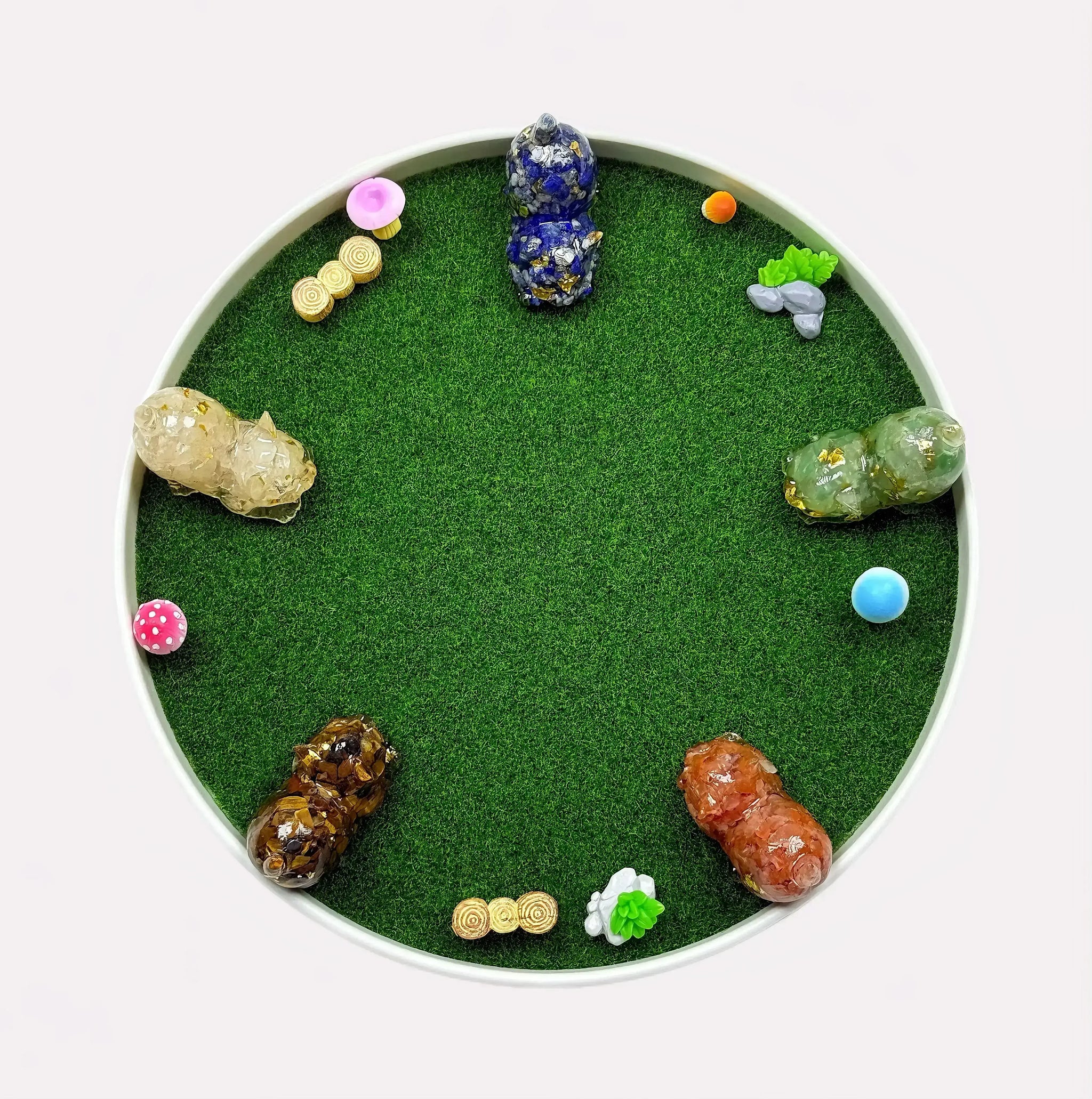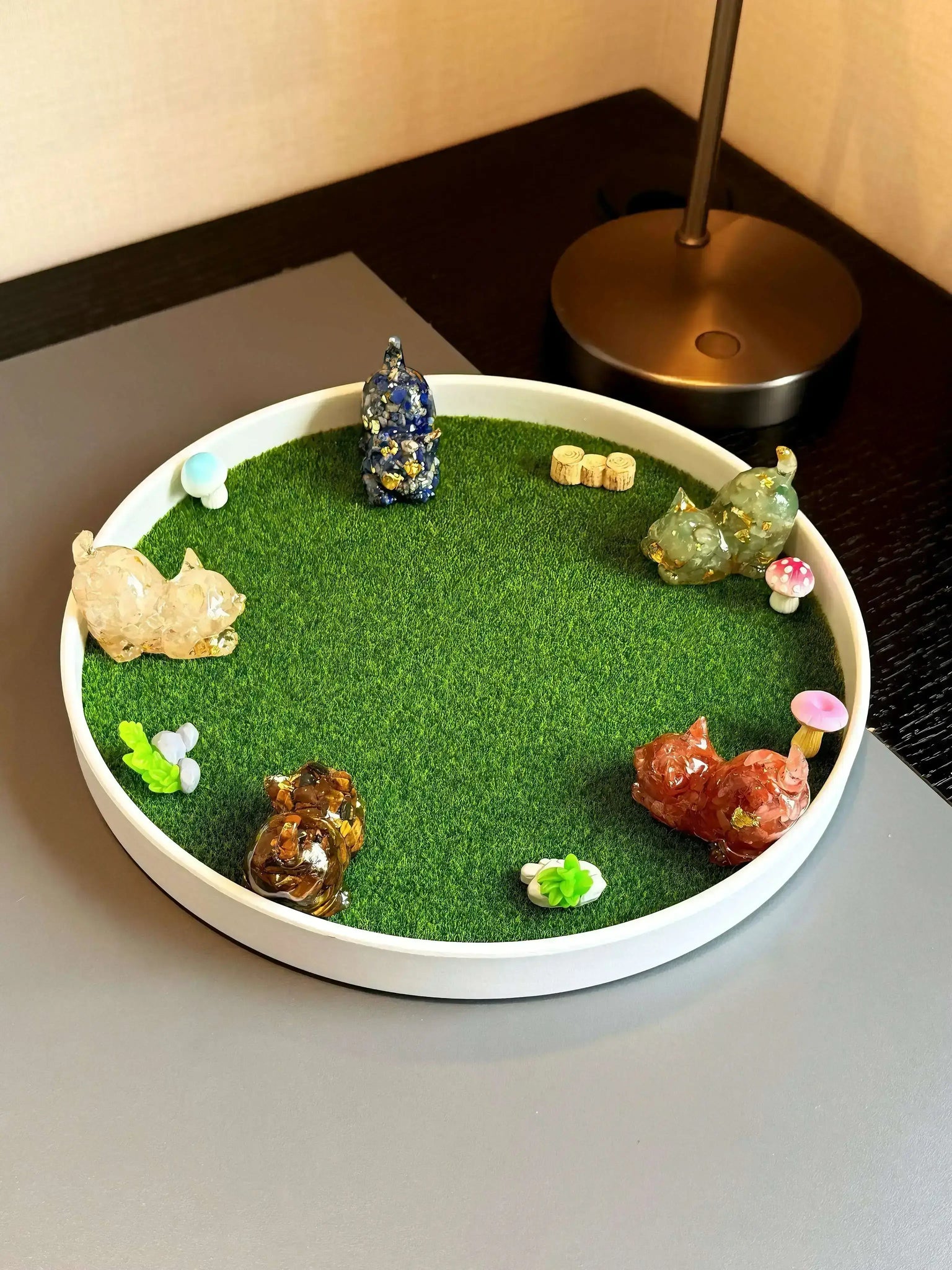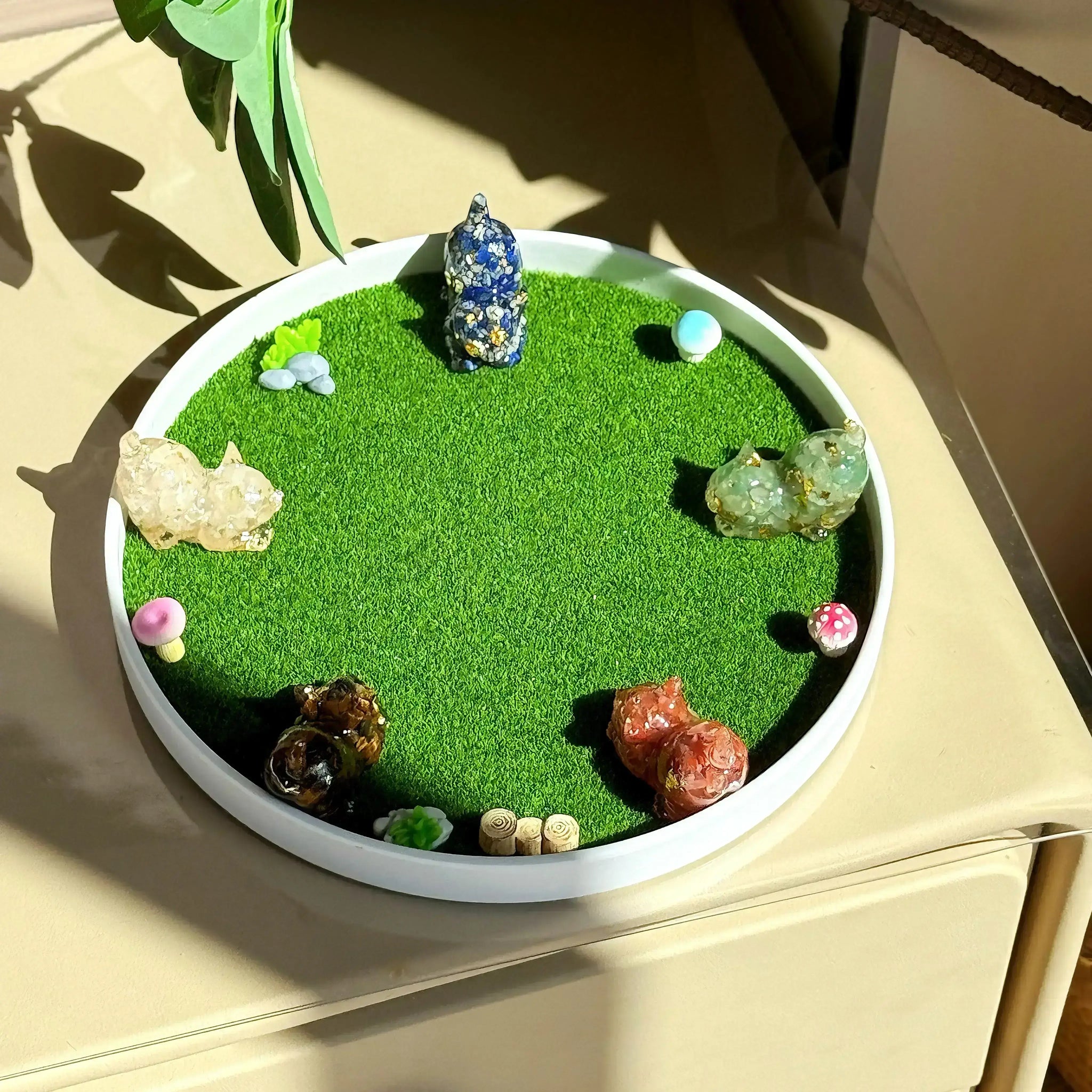 - Material: Natural Pine Wood · Faux Grass · Resin · Genuine Healing Crystals